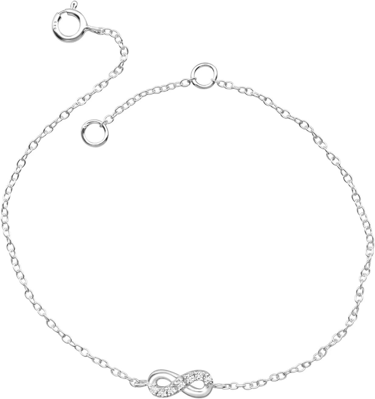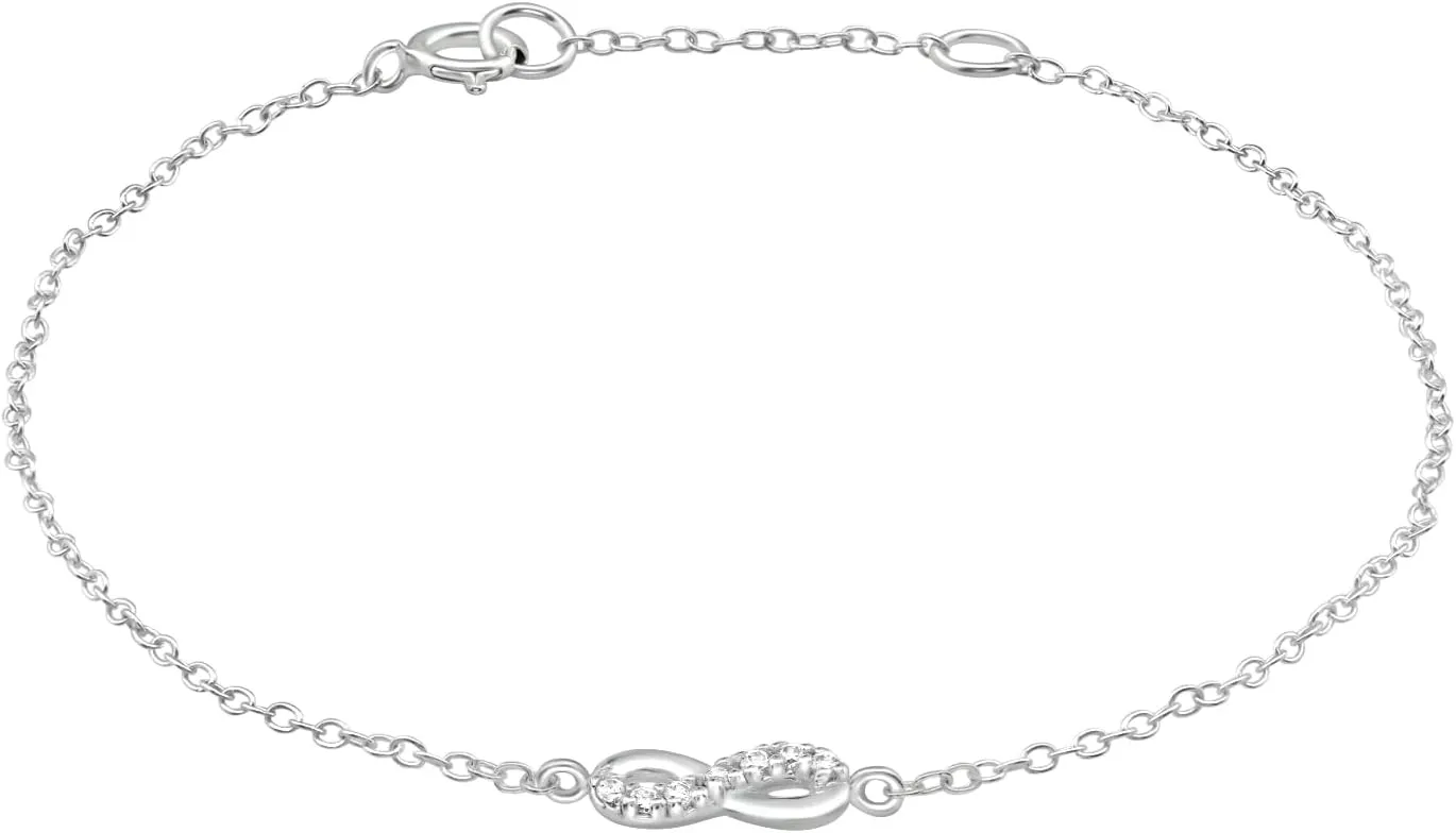 Genérico Pulsera de Plata 925 con Infinito y Circonitas, Cadena Ajustable 18cm + 2cm, Colgante Delicado 10mm x 4mm, Amor Eterno