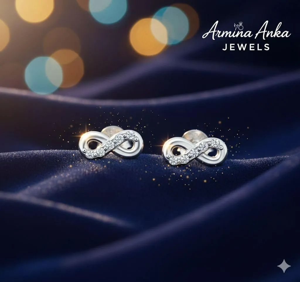 Pendientes de Plata de Ley 925 con Forma de Infinito, Cristales Brillantes, 9.6 mm x 4.3 mm, Acabado E-Coat, 0.5 g, Diseño Elegante