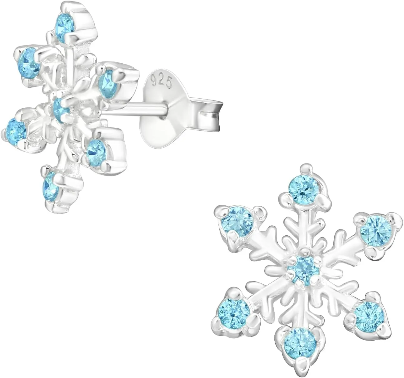 Descubre la magia del invierno con estos exquisitos pendientes de copo de nieve en plata de ley 925. Cada pendiente, con dimensiones de 12mm x 12mm, presenta un diseño delicado y simétrico adornado con 14 circonitas cúbicas de color azul celeste que capturan y reflejan la luz con cada movimiento. El acabado E-Coat especial sobre la plata garantiza un brillo duradero y una resistencia superior al uso diario. Con un peso ligero de 1,35 gramos, estos pendientes son perfectamente cómodos para uso prolongado. El engaste artesanal de las piedras realza la calidad artesanal de la pieza. Presentados en una elegante caja roja con lazo, son ideales tanto para uso diario como para ocasiones especiales. El cierre de tipo presión asegura un ajuste firme y seguro. Estos pendientes son perfectos para añadir un toque de elegancia invernal a cualquier conjunto.
